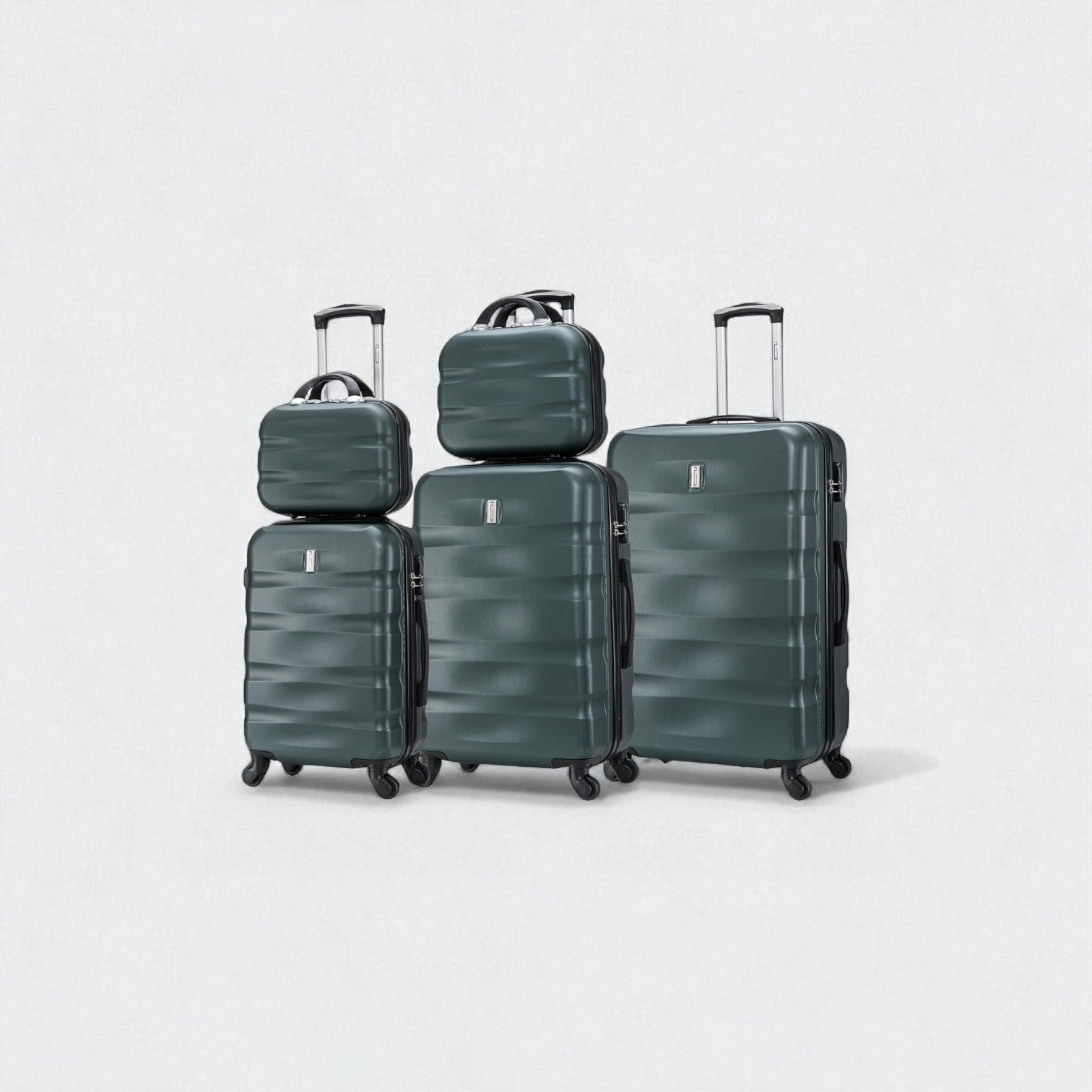 AeroWave 5-piece suitcase set – cabin, medium, large + 2 vanity cases Set_Valise_5_pièces_AeroWave_Valise_Cabine_Valise_Moyenne _Valise Grande_2x_Vanity_Vert_Celims_France